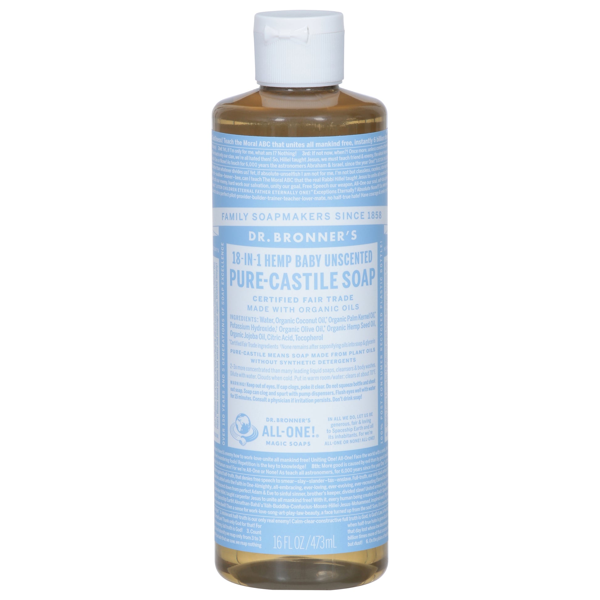 Dr. Bronner's Baby 18-in-1 Hemp Pure-Castile Unscented Soap 16 fl oz